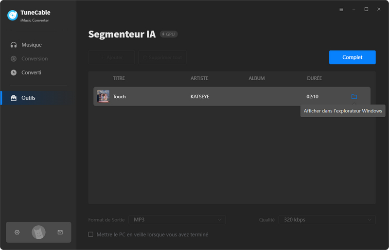 Il existe un autre outil utile appelé Séparateur Audio IA, qui permet de séparer l'audio en voix et en accompagnement.