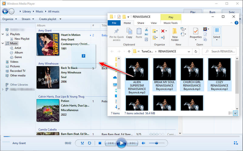 Step 3: Drag and drop the Spotify Music tracks from the local disk to the music library of Windows Media Player for free playback.