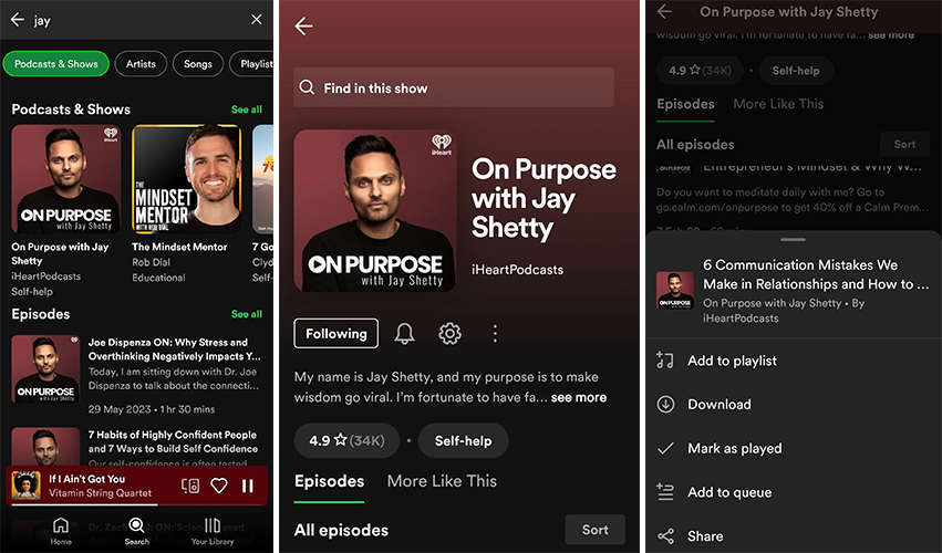 Step 3: Tap the "three dots" at the bottom right of each episode, and choose "Download Episode".