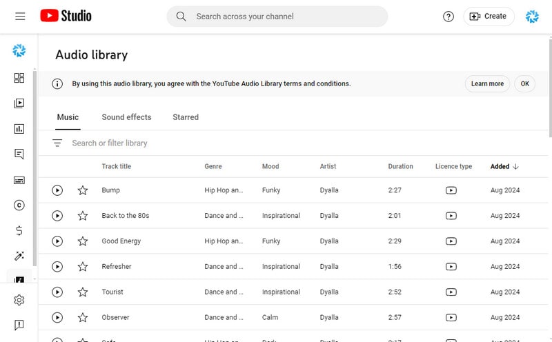 Numerous creators are unaware that YouTube boasts a vast array of royalty-free music, freely accessible in the Audio Library within YouTube Studio, enabling hassle-free utilization. The music library allows browsing by mood, track name, artist, or genre, providing a tailored experience.
